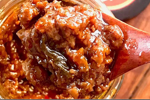 扎实的牛肉粒,细嫩有嚼劲,加上味足的川味辣椒,肉香、辣椒的鲜香相互缠绕,鲜香开胃,从口到心的满足,让牛肉酱的口感层次更加丰富~