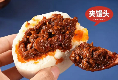 肉酱咸香四溢的滋味,真的超级下饭。即使一碗平平无奇的白馒头,有了酱料的佐餐,也能让人胃口大增。