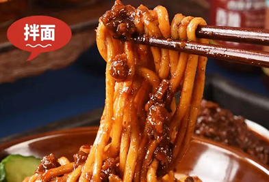 味道浓郁、而且自带牛肉粒,搭配任何食材都能变成一道美味。油滑鲜亮的酱,淋在热气腾腾的面上,让原本无味的面条,经过酱料的渲染,咸香恰到好处。