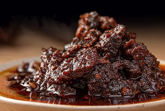 为了让你吃到的每一口都酱香醇美,口感真实,精选优质新鲜牛肉和黄豆酱等佐料,严格按照古法手工熬制,最终成品才能如此惊艳你的口感。