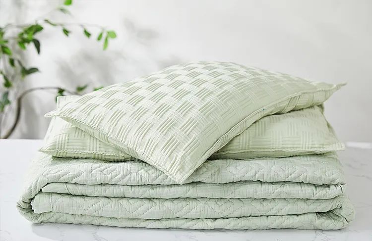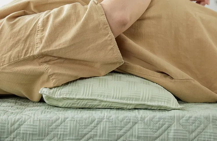 加上它外层面料是华夫格针织棉,摸上去细腻顺滑。夏天空调房、或冬天睡它,都微温不冰又很透气,特别舒服。