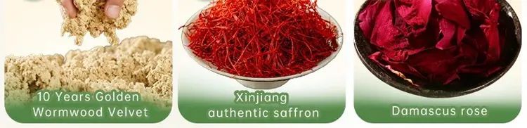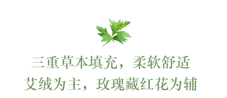 而且今年升级了床垫的草本配方,陈年黄金艾绒,+新疆地道红花+大马士革玫瑰,真材实料都是能看到的哦,满满当当▼