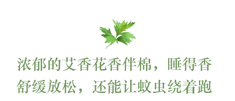 而且艾草香可不止香那么简单,它的气味里含有的樟脑、龙脑等草本素,可以有效赶走蚊虫、螨虫。