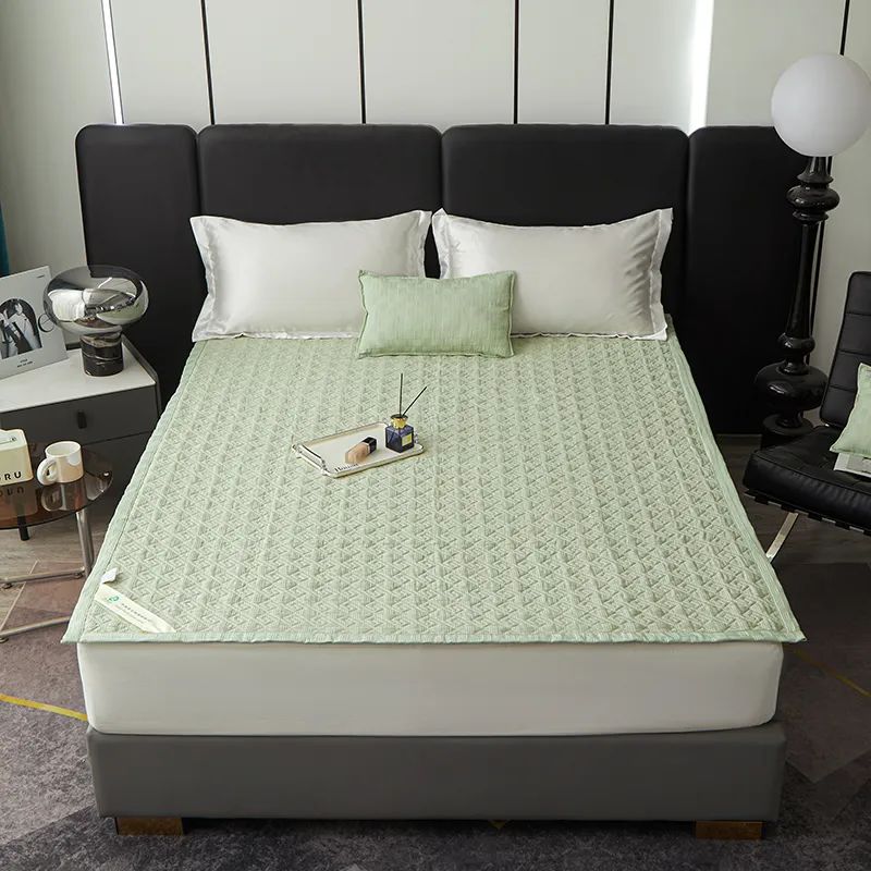 它的尺寸是1.8*2米的。不过和席子不同,它可以像被子一样随意折叠,完全不怕折坏,常见尺寸的床都能适用。