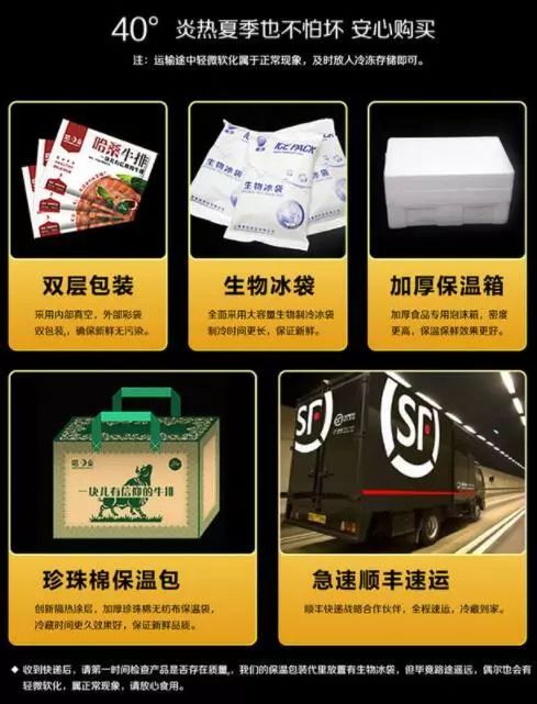 顺丰冷链速运,低温保鲜,多层保温,即使是在炎热的夏季也不怕!保证让你收到的每一片牛排都是新鲜的~