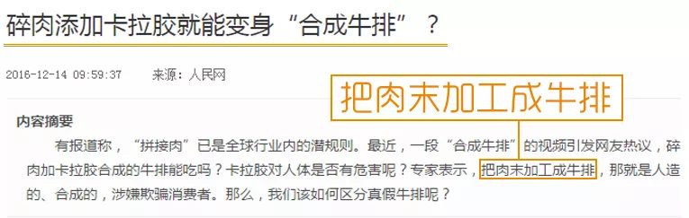 🔼这种“拼接肉”虽早已是全球行业内的潜规则,但需要注意的是,真正的牛排内部很少有细菌,所以不用加热到熟透,半生半熟的也可以吃;而“合成出来”的牛排内部会有细菌滋生,一定要熟透才安全。