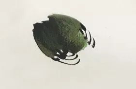 步骤一:用藤黄+花青调出绿色,以笔尖蘸中墨,三笔点出背部。↓↓↓