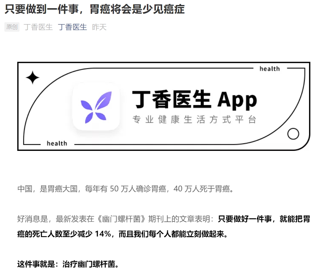 希望每个人都能关注自己和家人的幽门螺杆菌情况,希望在不久的未来,胃癌能够真正成为一种少见癌症。