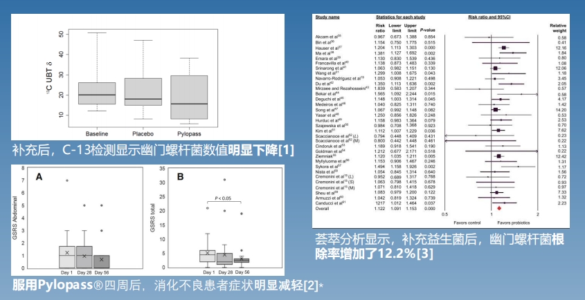 Pylopass罗伊氏乳杆菌能 表面识别并粘附幽门螺杆菌的黏附分子,和胃内的幽门螺杆菌进行物理性地捆绑、缠绕,形成不溶解的聚合物,经过消化道排出体外,从而减少了幽门螺杆菌的数量,降低胃炎、胃溃疡和胃癌的患病风险。