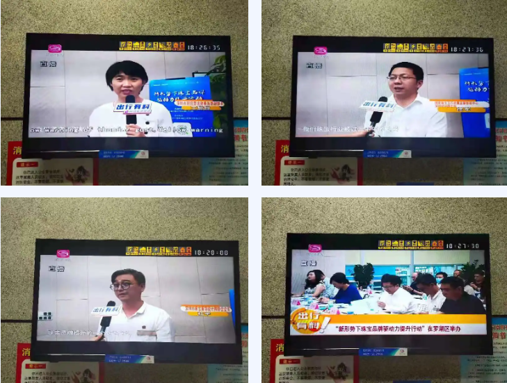 在讲座现场,【深圳卫视】特别采访中国国际贸易促进委员会深圳市委员会王甜甜副部长、深圳市珠宝首饰设计师协会杜半会长、NGTC国检教育徐军校长。