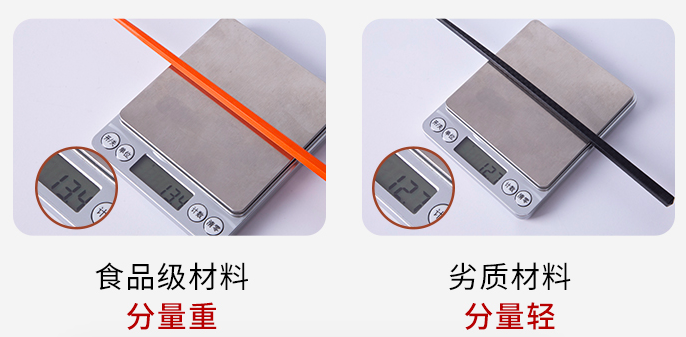 差别之所以这么大,是因为这款日式合金筷采用高分子PET材料和玻璃纤维合成,硬度强、韧性高,还具备木筷所没有的高密度和不可吸附性。