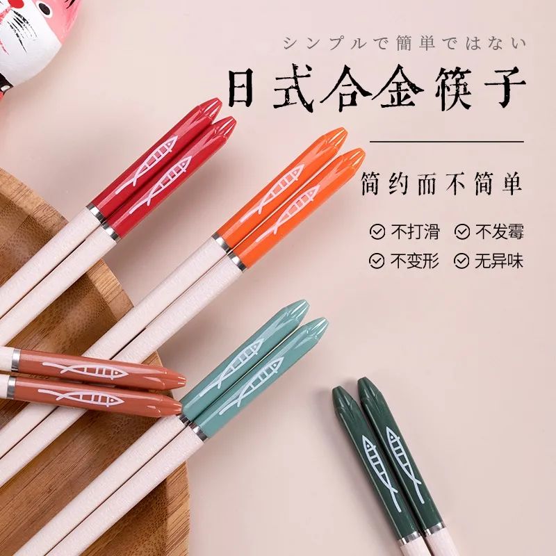 一袋日式合金筷里共有5双筷子,5种颜色:海棠红、清水蓝、赤茶橘、军草绿。