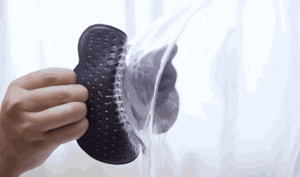 我们模拟测试它的吸湿效果:将“汗水”滴在小巨蛋胸垫上,瞬间被吸收掉