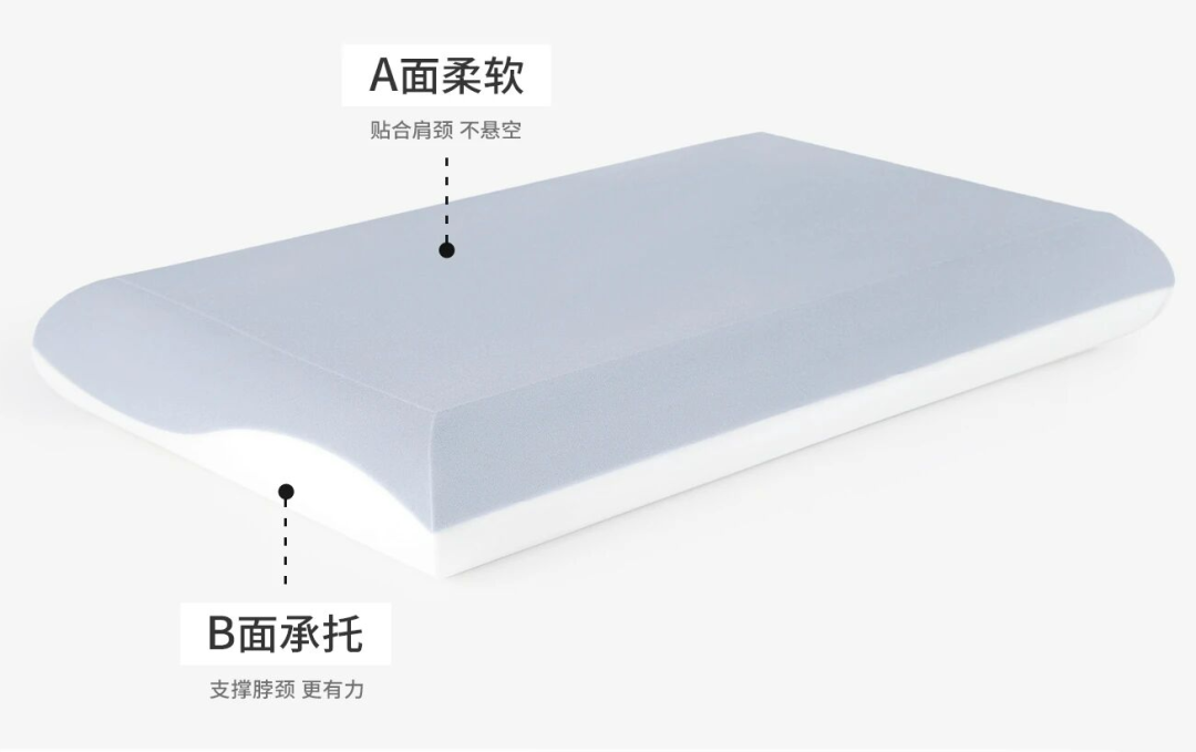 这款枕头的A、B两面不同支撑力度设计就是为了稳稳托住这个生理弧度,让咱们在睡眠中不知不觉就变成自然曲线、不被压迫。