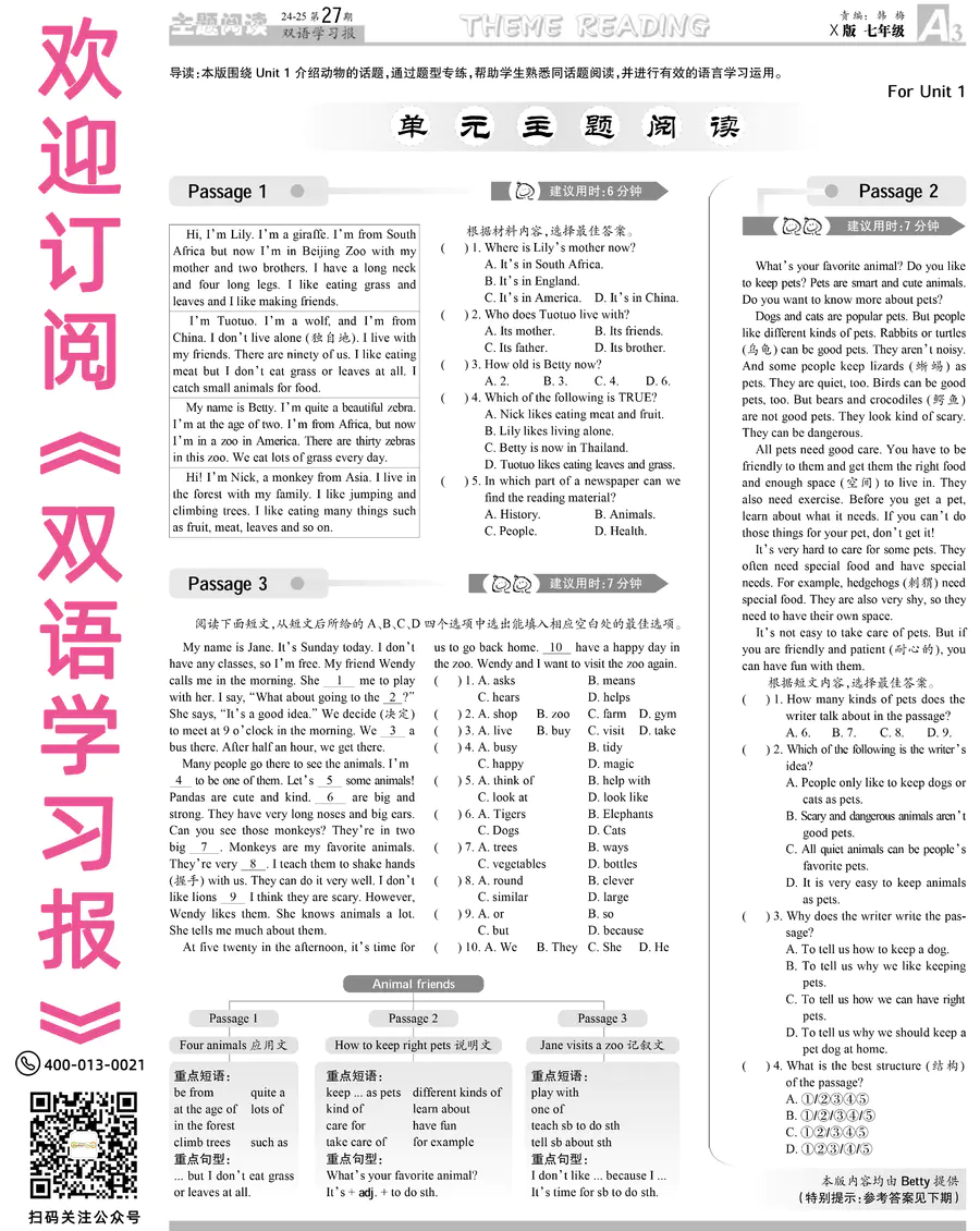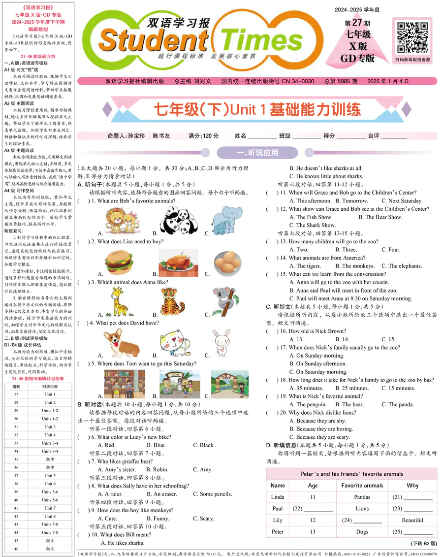 《双语学习报》七年级 X版GD专版 第27期