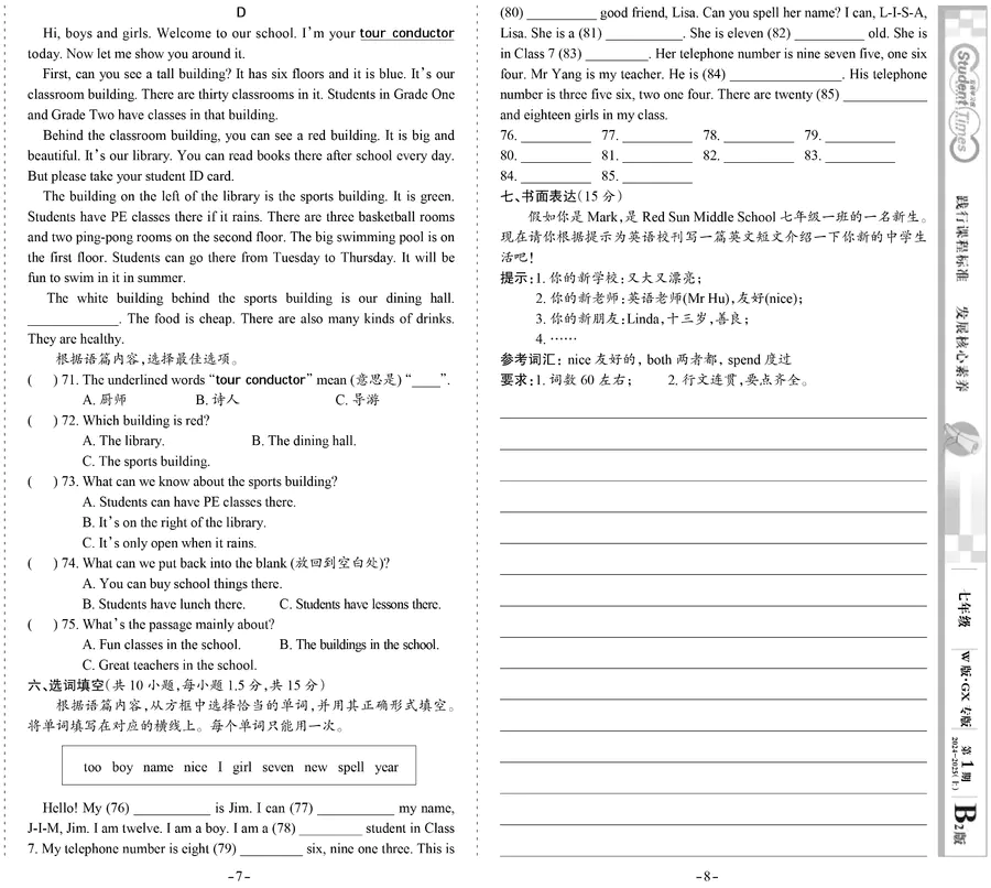 初中英语样报 七年级 W版GX专版 第1期