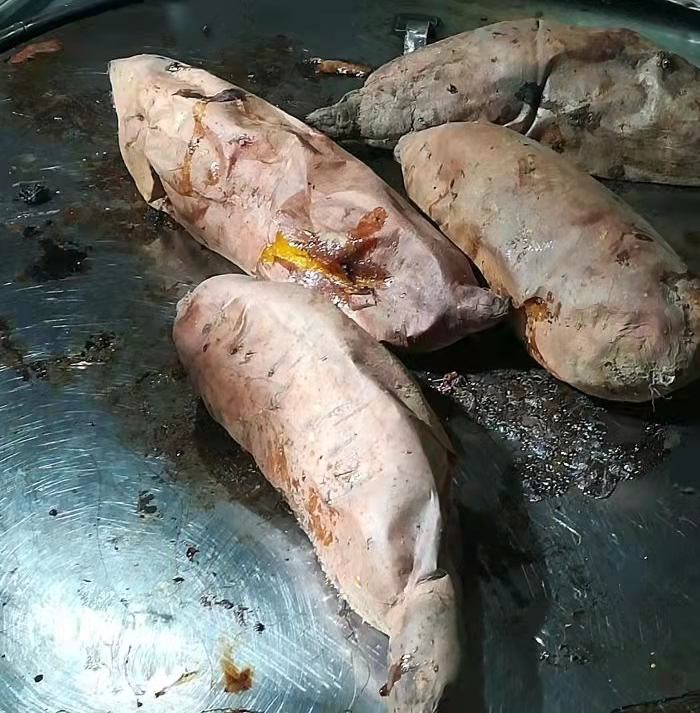 红薯外皮焦黑且厚,满眼期待地等着剥开外皮,红黄的内瓤在升腾的热气里若隐若现,一口下去是香甜细腻~