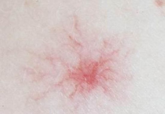 皮肤表面形成了蜘蛛痣,这是肝脏癌变常见的表现。因为肝脏功能降低时身体雌性激素水平升高,容易导致毛细血管扩张明显,在毛细血管有扩张表现时皮肤表面就会形成蜘蛛痣。一旦有这种明显的迹象需要警惕肝脏癌变,通过治疗的方式提高肝脏功能,这样肝癌带来的伤害才能减轻,才能防止蜘蛛痣大量形成。