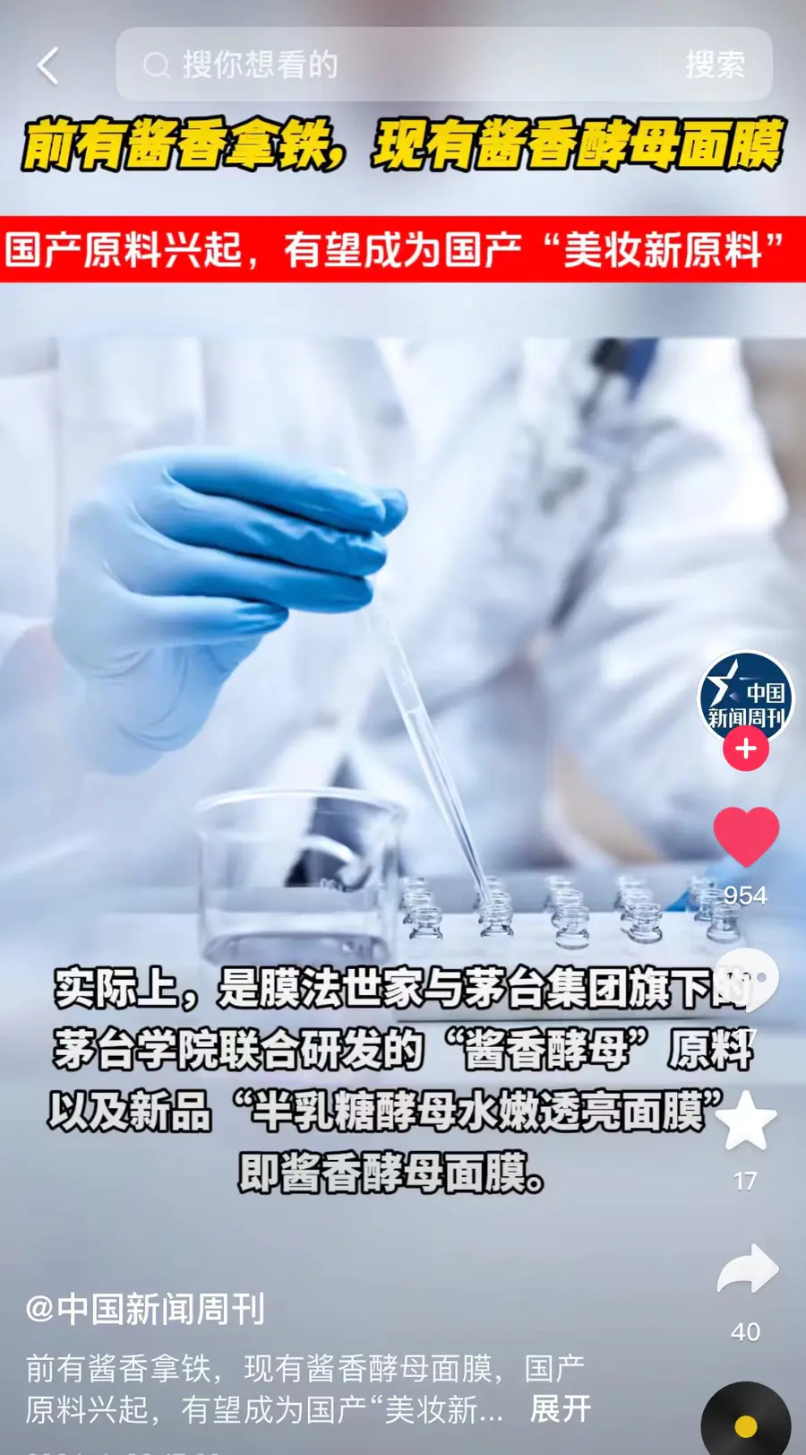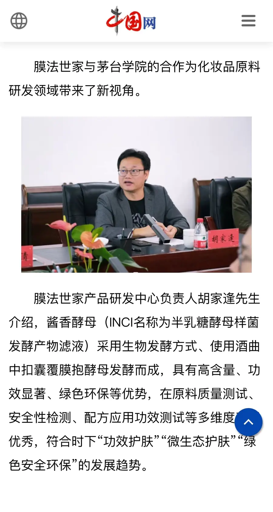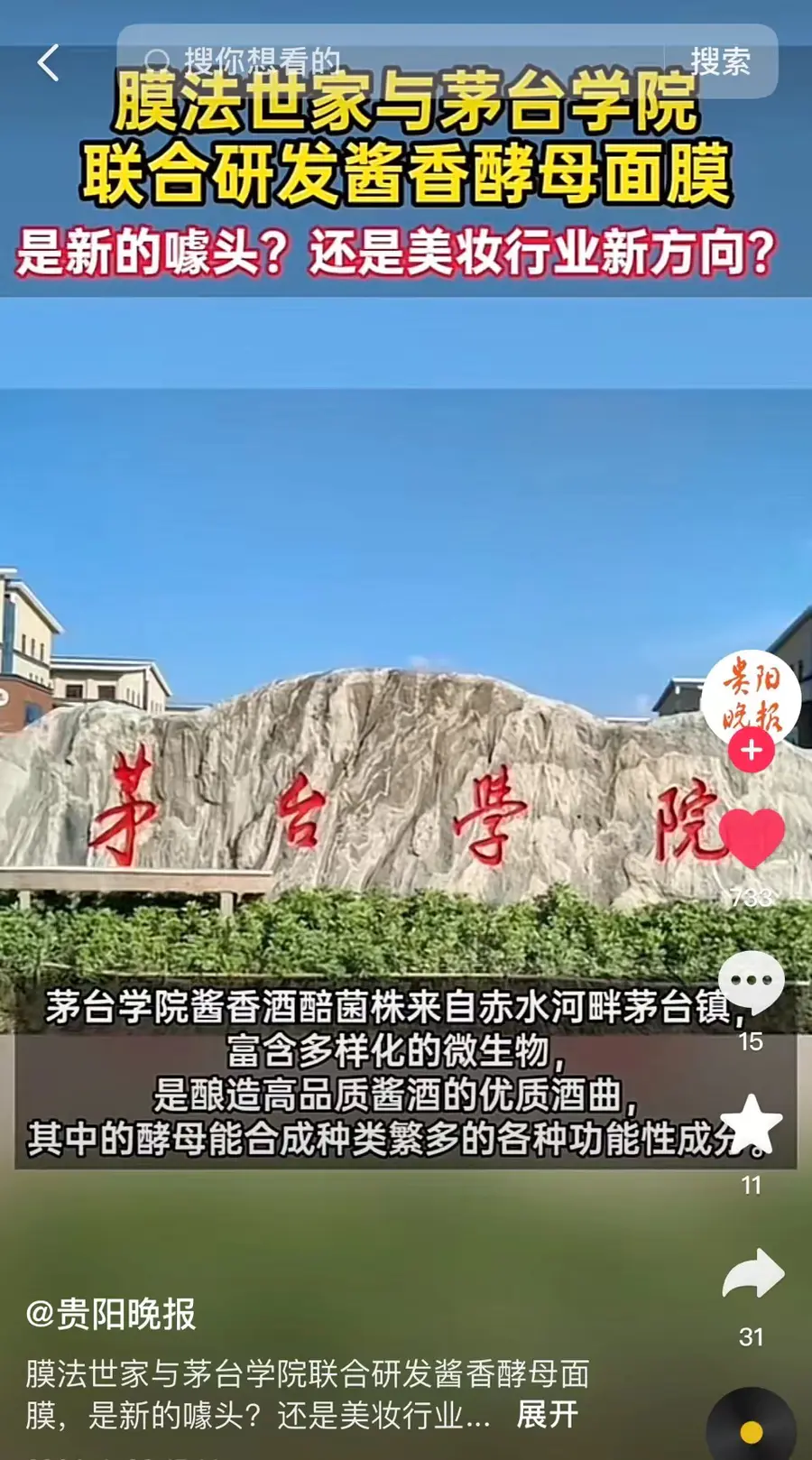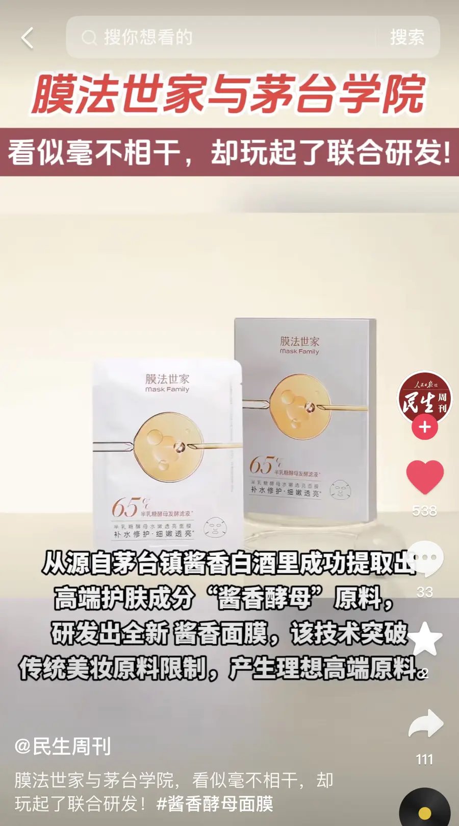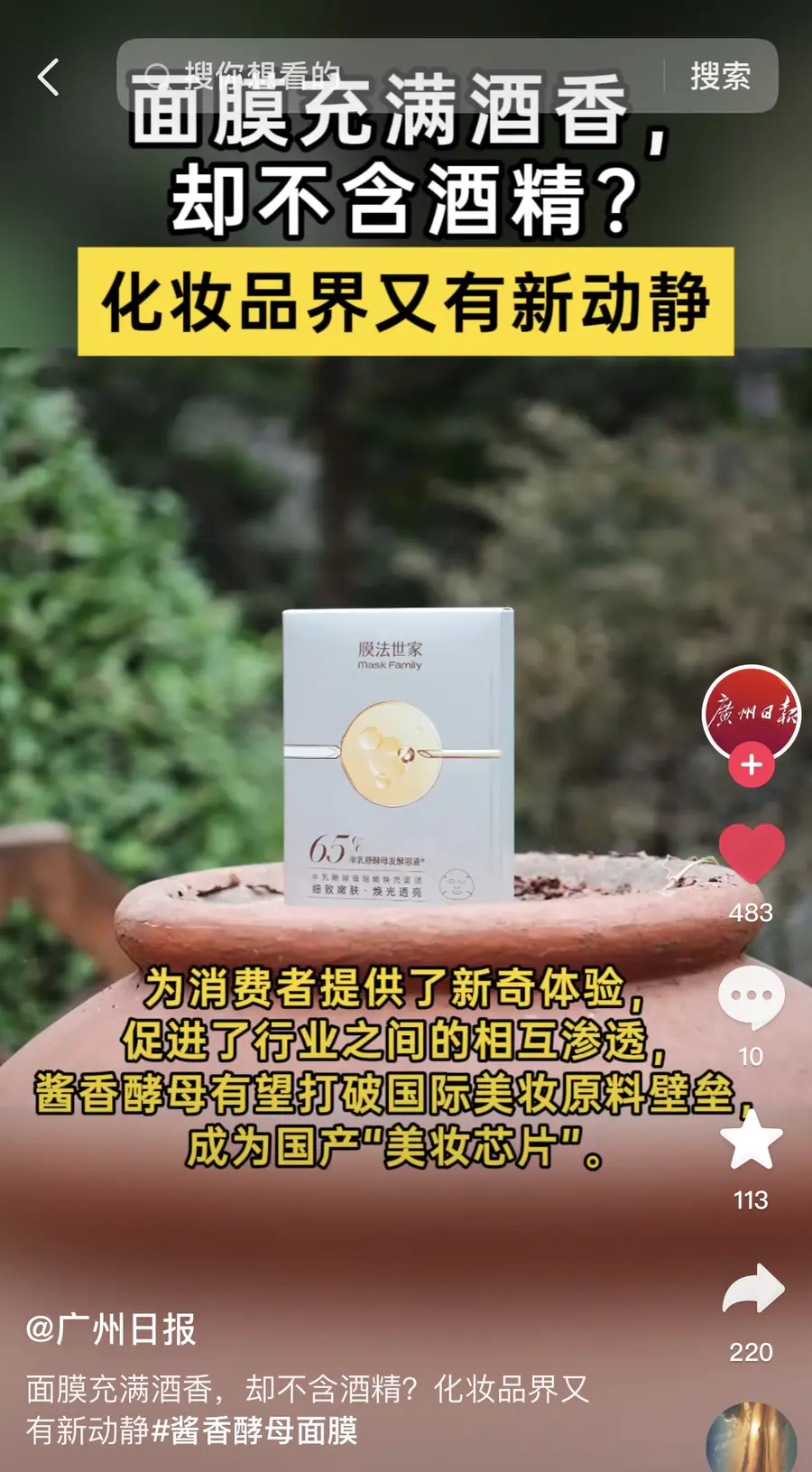 膜法世家联合茅台学院共同研发的专利酱香酵母原料,有望成为中国“美妆芯片”