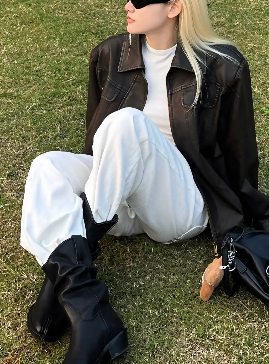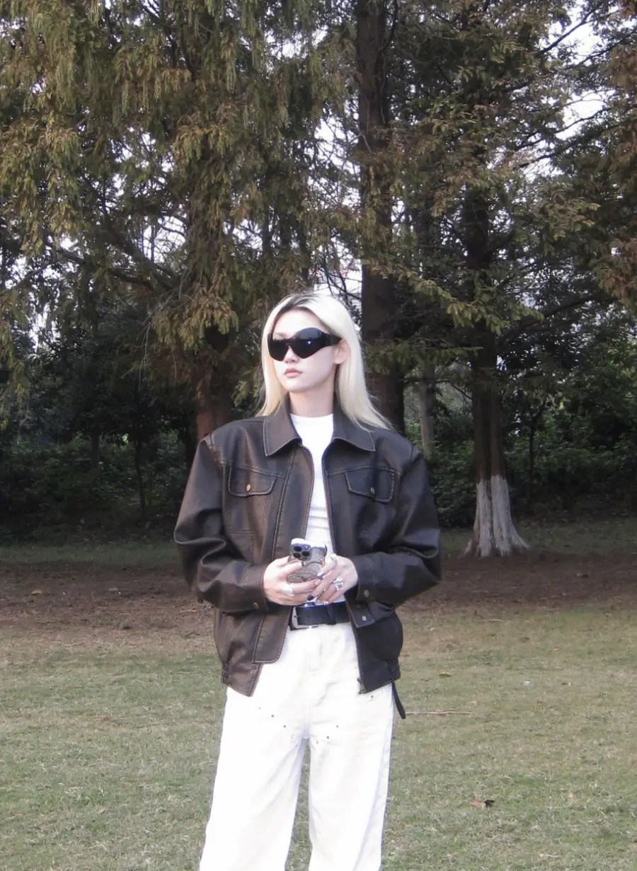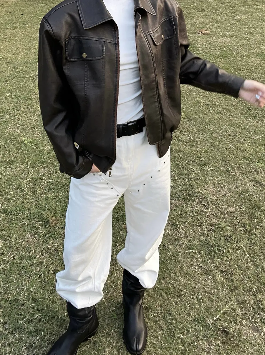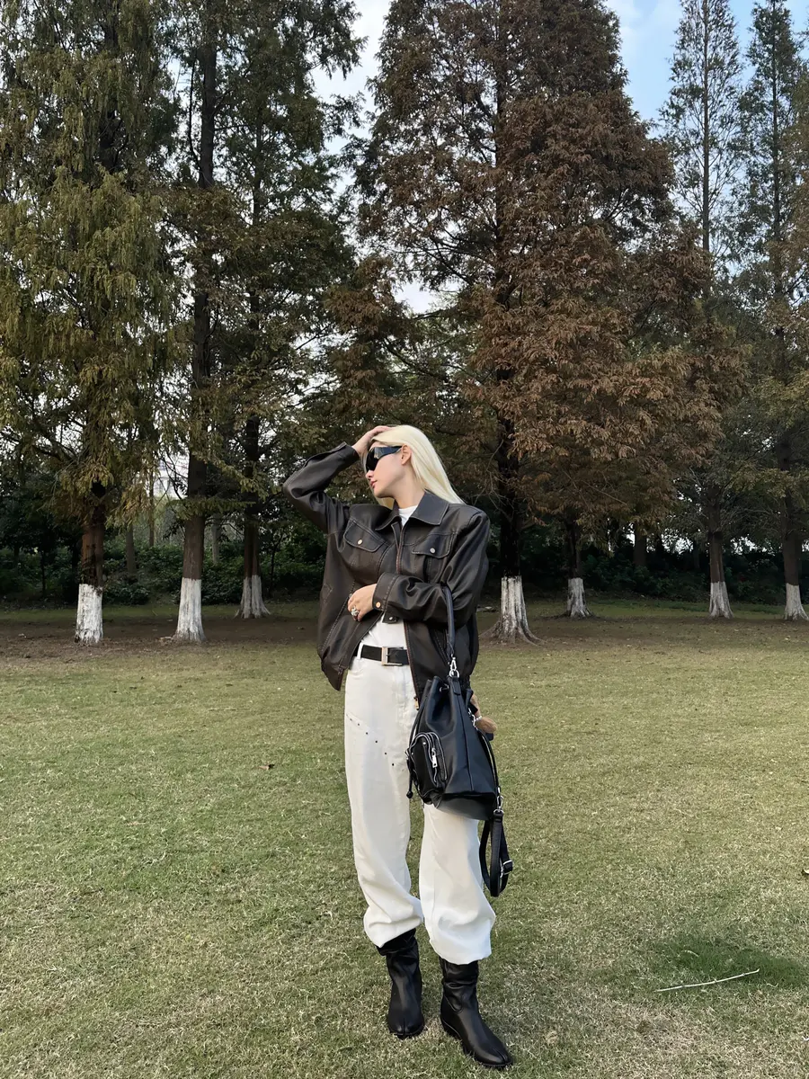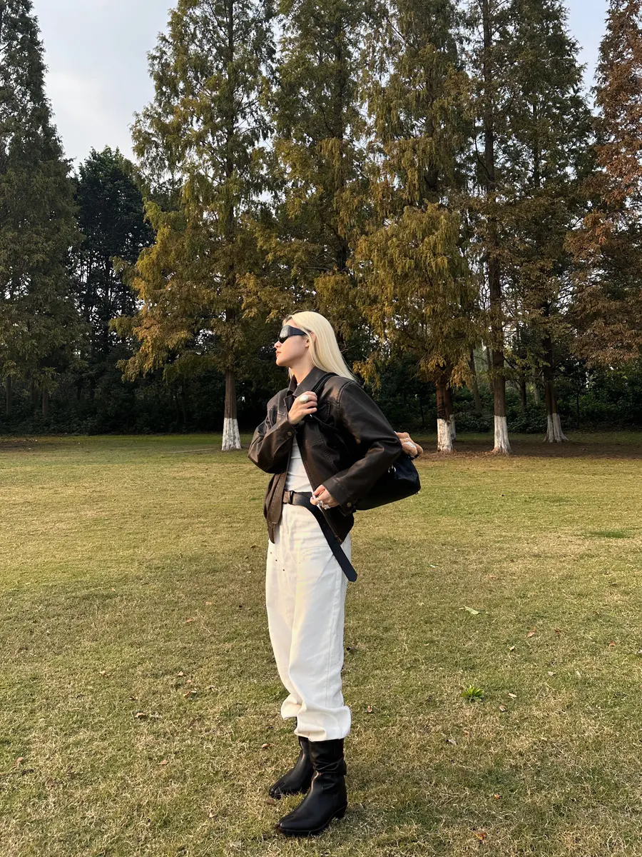 23AW | 皮革夹克搭白色直筒裤,高级感满满💓