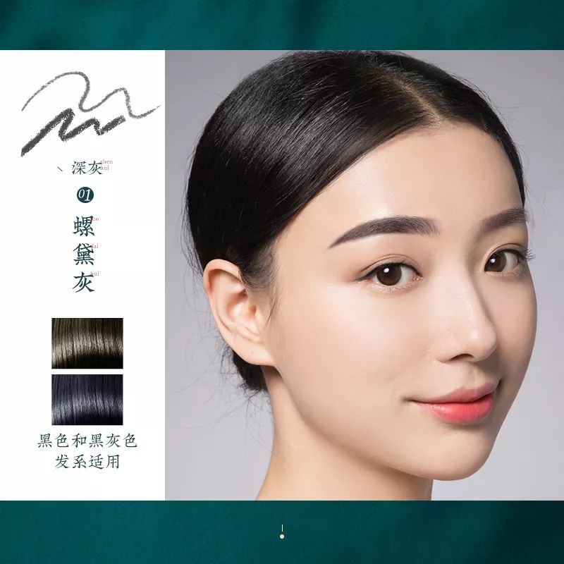 01号螺黛灰和05号螺黛栗,是适合自然发色的,黑色头发建议选择01号螺黛灰;灰色头发建议选择05号螺黛栗。