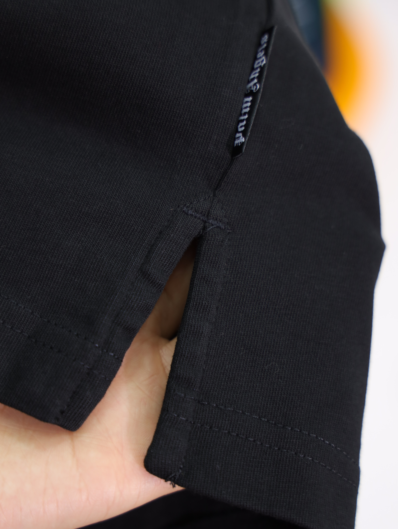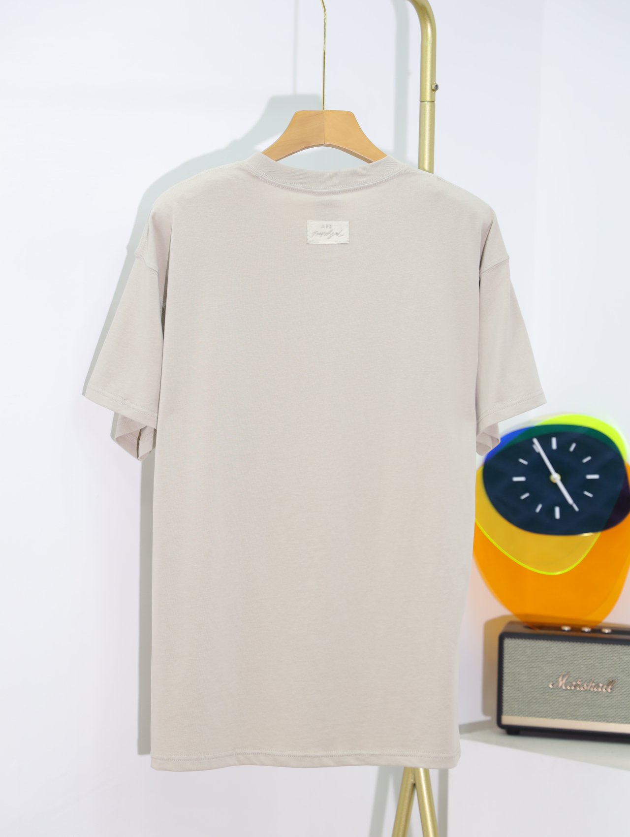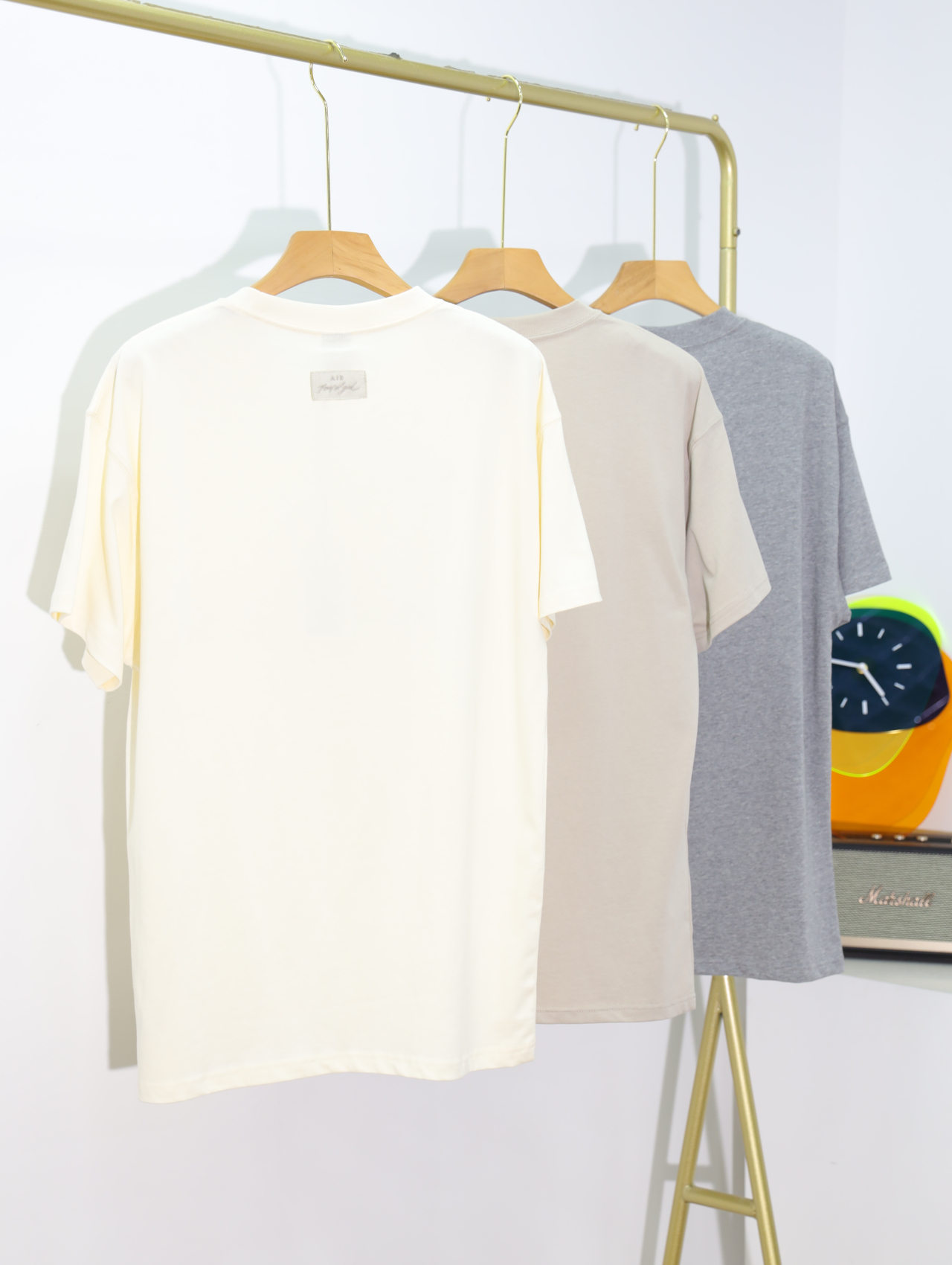 定制的230克高克重精梳棉,经典廓形T恤,加宽罗纹,恰好尺寸的松垮度,能轻松穿出慵懒调性!