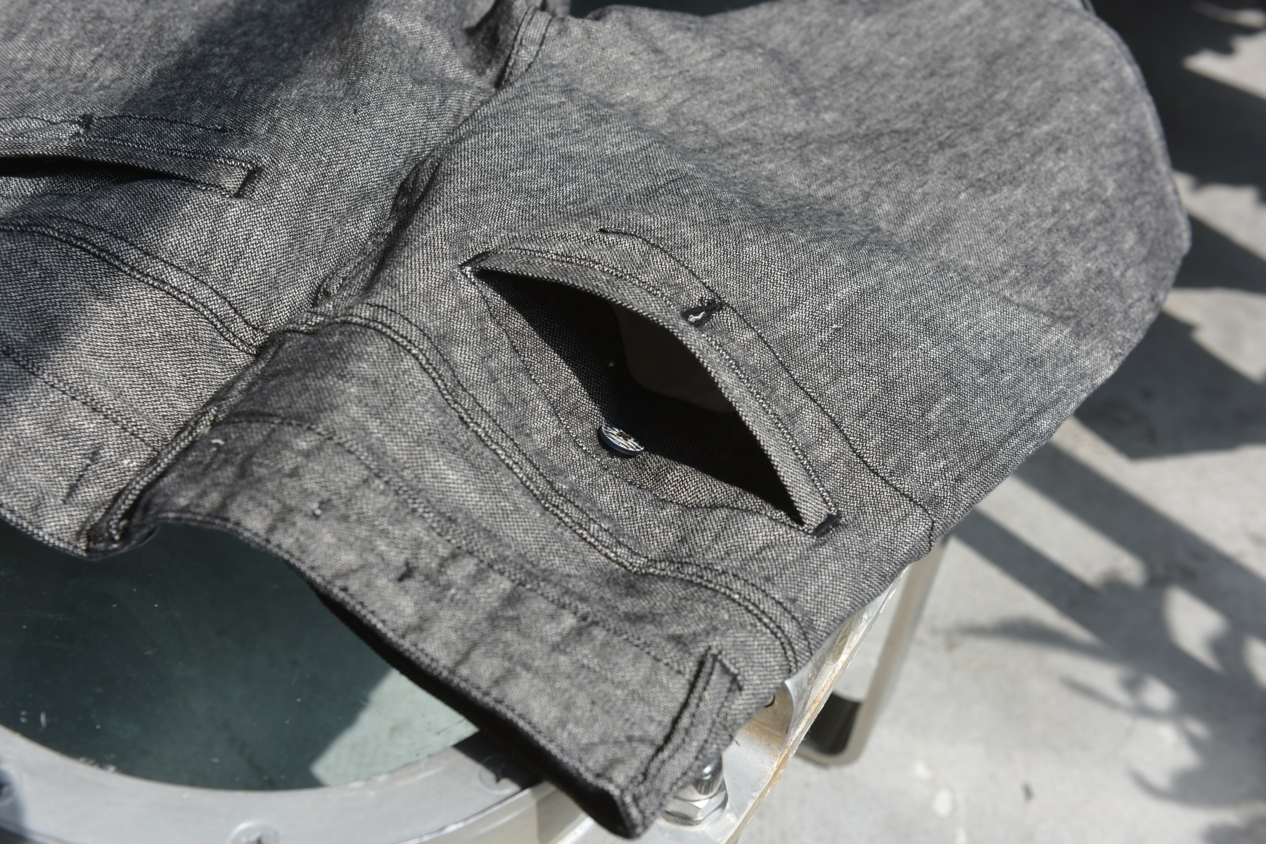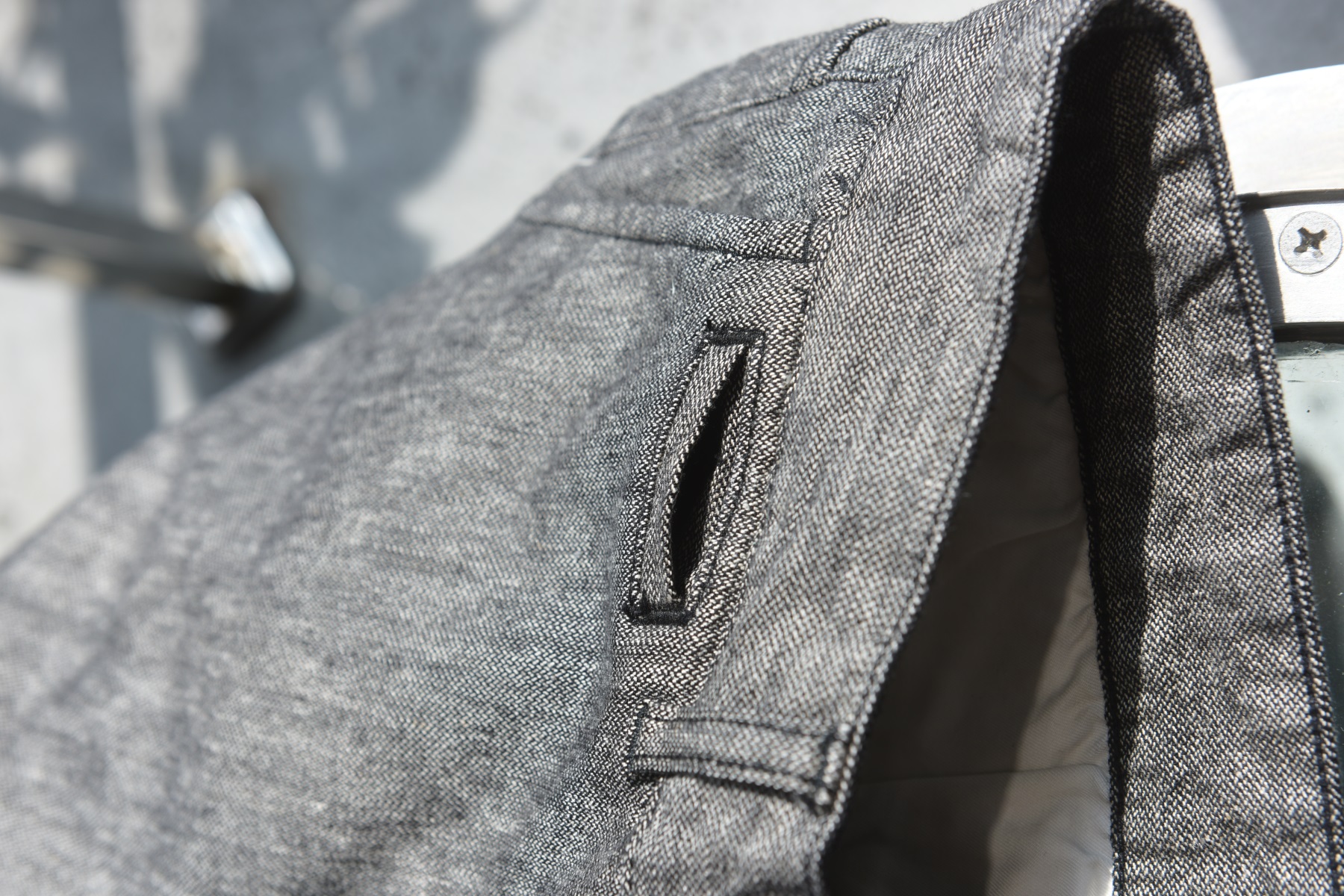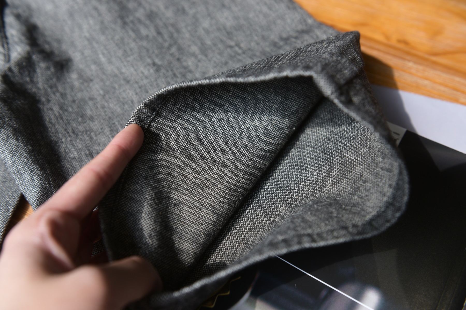 带有亚麻的透气和天然舒适性,经过丹宁水洗工艺,密度极高。