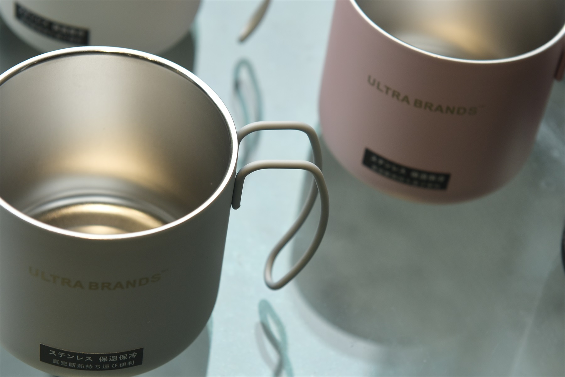 3. 5层抽真空设计恒温咖啡杯设计。最内层是密度的食用级电解涂层,第二层是SU304不锈钢内层,第三层是镀铜抽真空层,第四层是外层的SU304不锈钢外胆层, 最外层是外层保护电镀喷漆层。