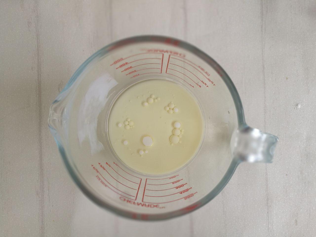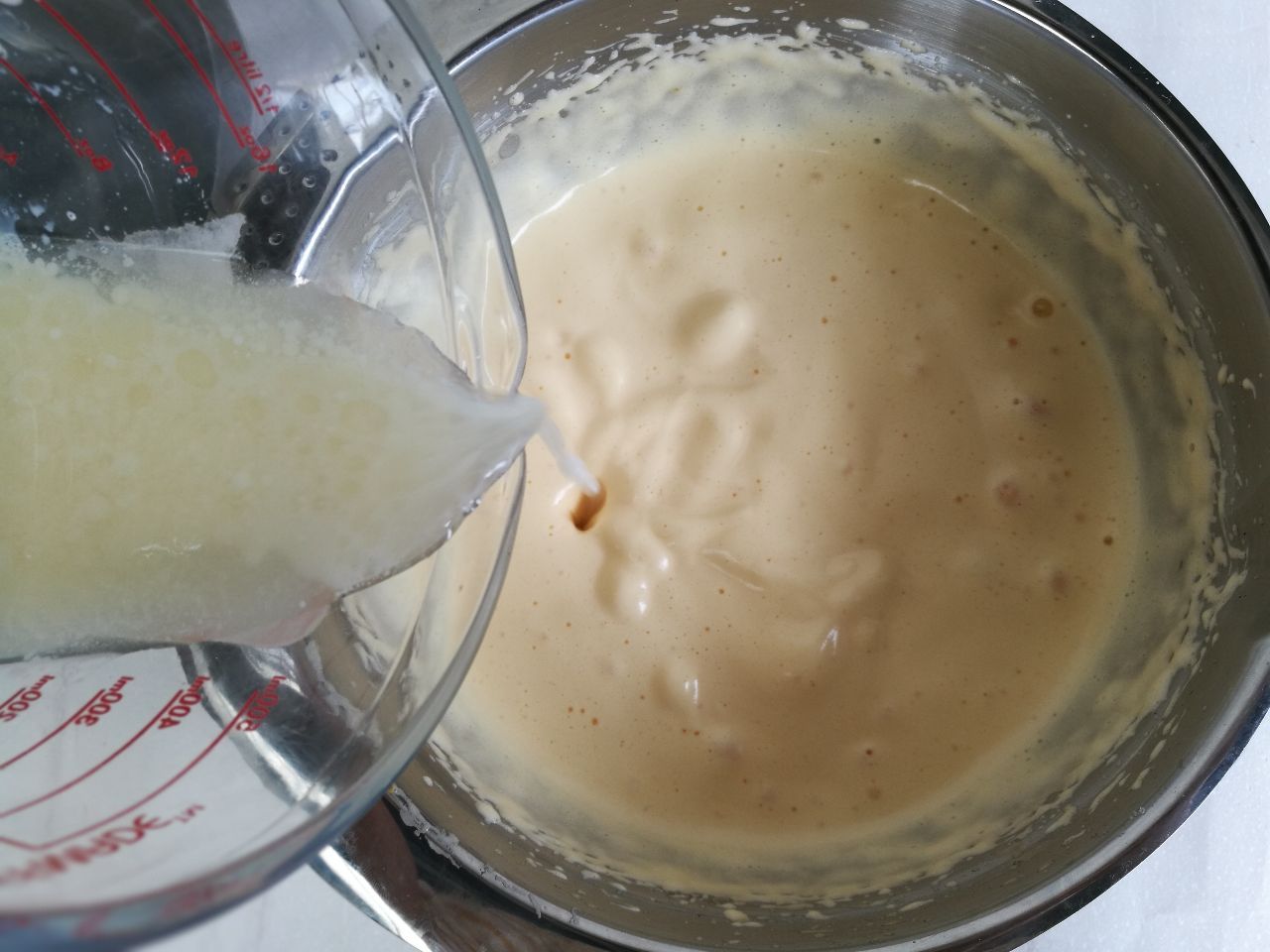 7、慢慢倒入牛奶溶液