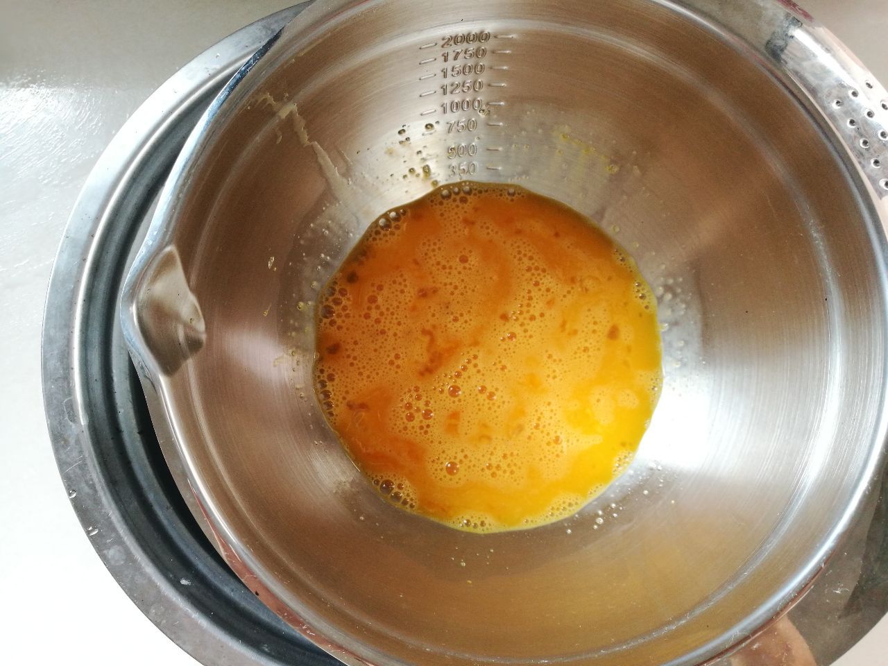 4、混合好的鸡蛋液放在60度的热水里,隔热打发