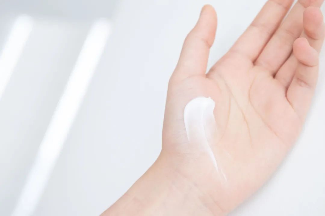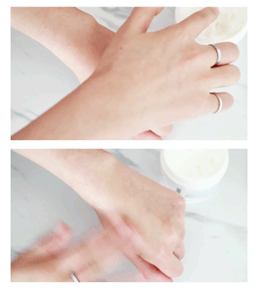 做了个小实验:涂抹完这款面霜,纸巾碎屑洒在手背上,肌肤一下就吸收了,不会黏在手背上。