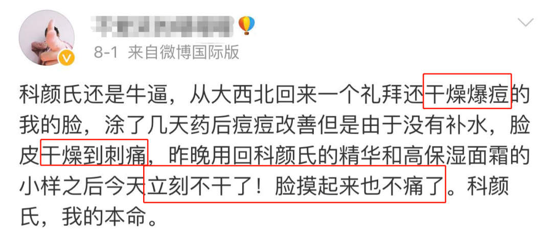 “干燥到爆痘刺痛,用了立马不干不痛”