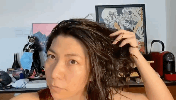 好白是沙发,吹到全干就会很爆炸。所以她选择包10分钟、吹2分钟,再自然晾干,不到一首歌的时间~