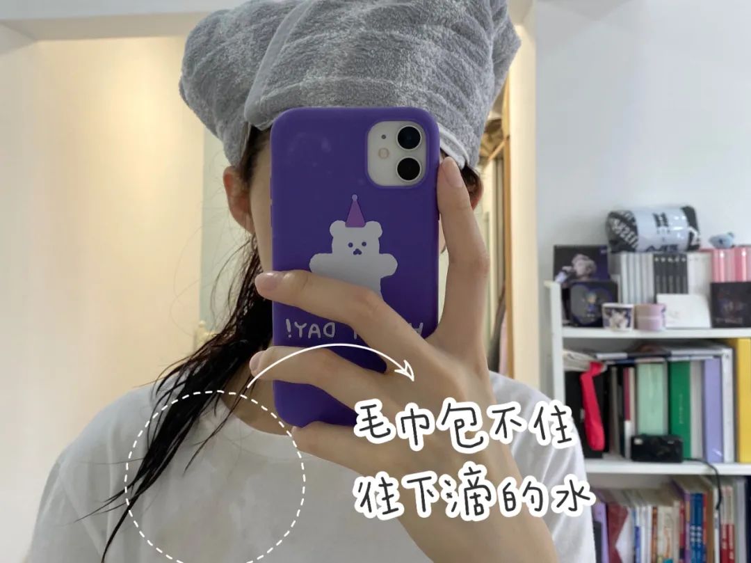 我们头发长一点的人,一般毛巾包都包不住。头发太多,就是被压在五指山下的猴子。浴巾也好,干发帽一吸水就重到徐徐后移。本来头发就少,还吊着个秤砣受罪。