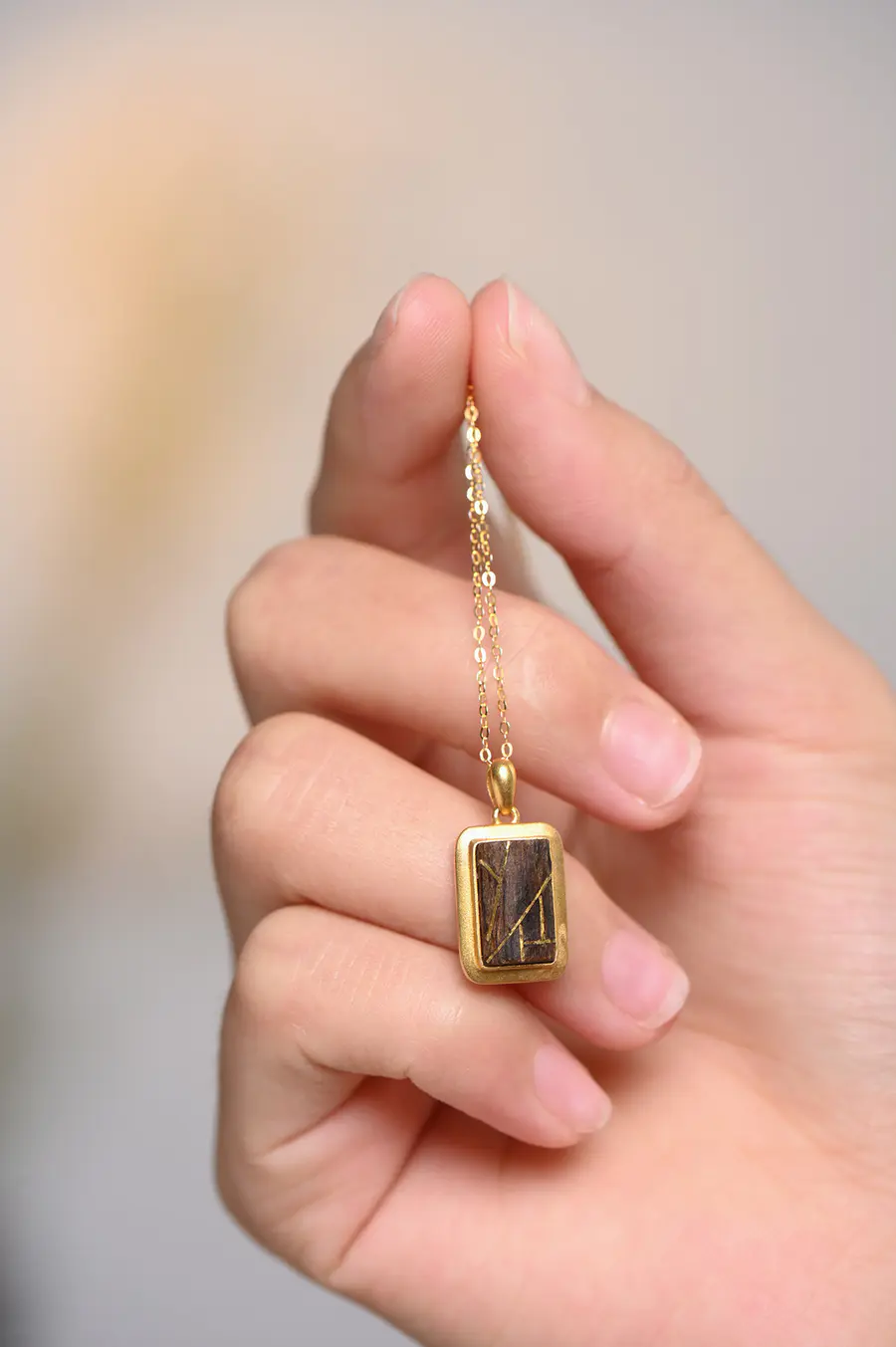 翠玲珑丨天然芽庄白奇楠包金吊坠 沉水级 SP9464