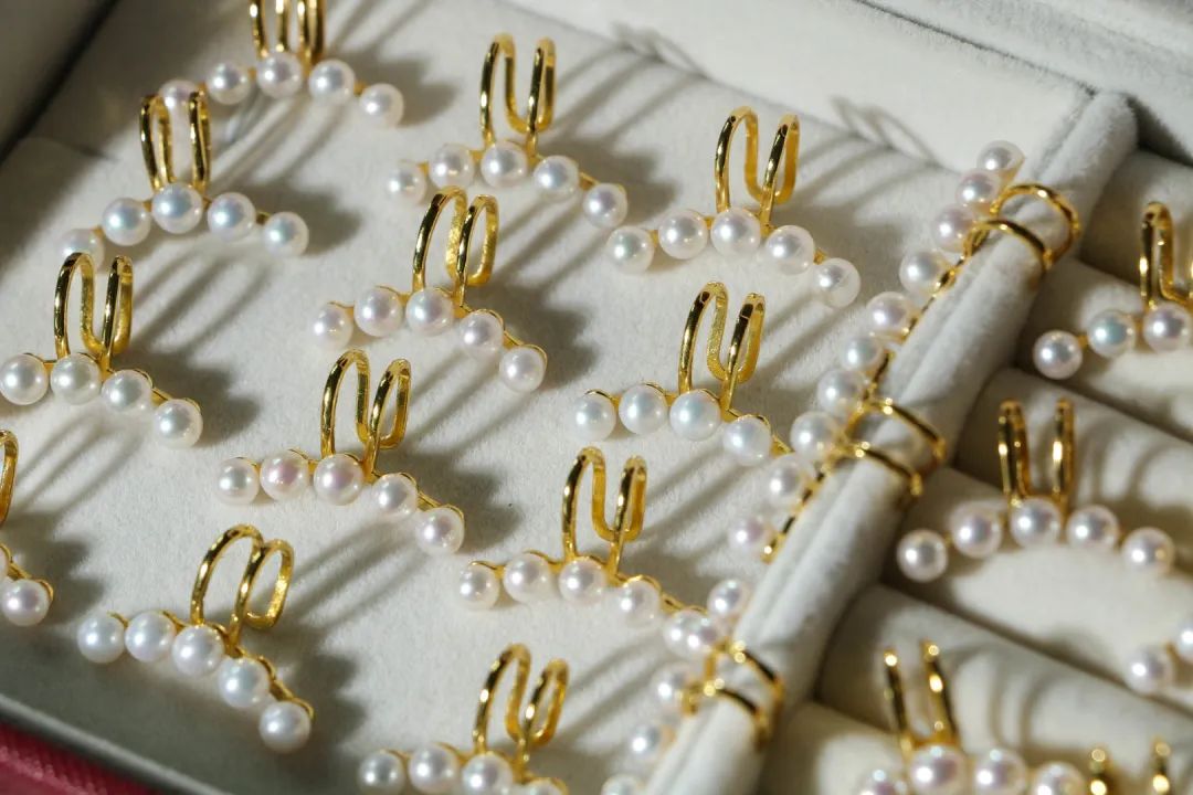 这个耳骨夹的珠光是不是很亮,这个做做不容易,因为5颗珠子要光线亮度差不多,偏色差不多,大小匀称,对于配珠是一个挑战。做工好坏,很挑战企业的软实力,都是肉眼甄选。我们用心做精品,争取只只都精美。