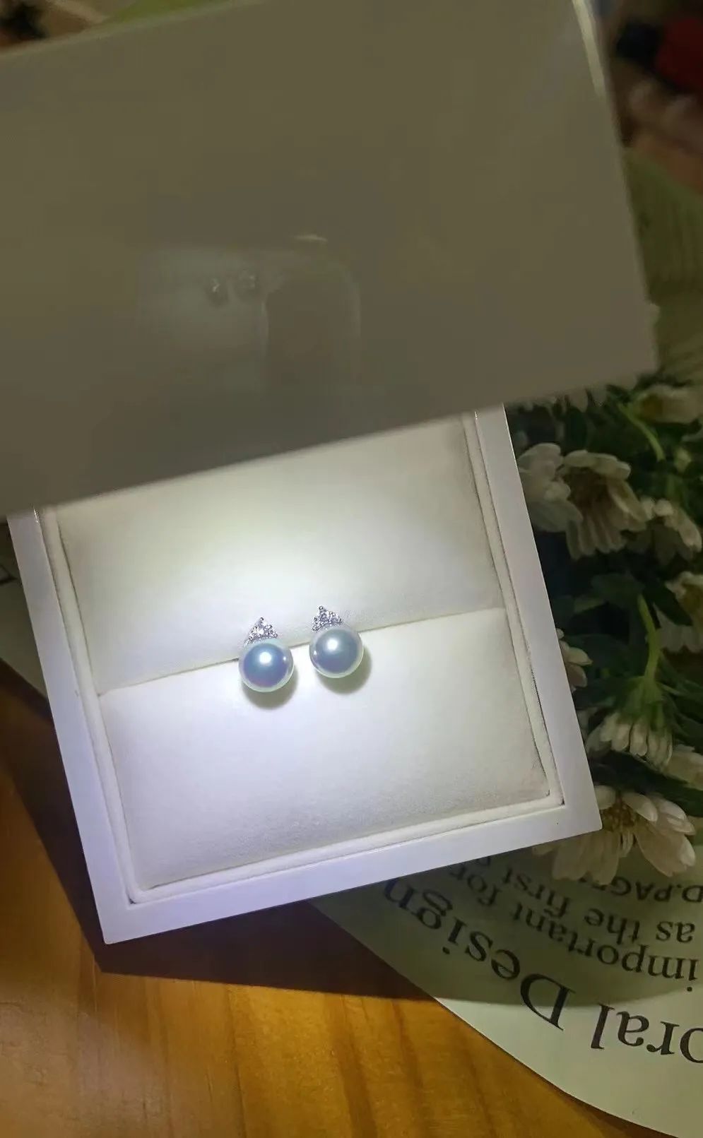 日本定制的S925银制配件,日本进口akoya海水珍珠,真多麻色调,超美珠光。珠子基本无暇或微微瑕。