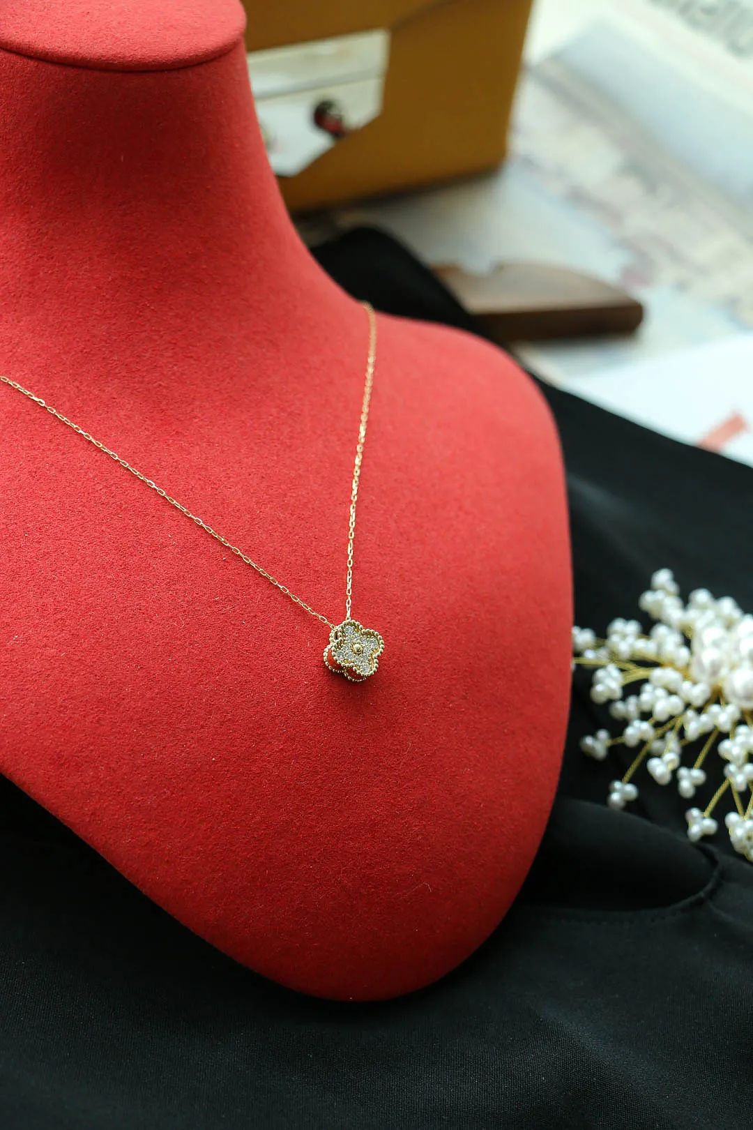 日本制黑玛瑙四叶草,泡泡钻石,是叠搭的最佳组合,泡泡钻石精致,四叶草锁骨链大方,优雅,戴上它们准备散发魅力吧。