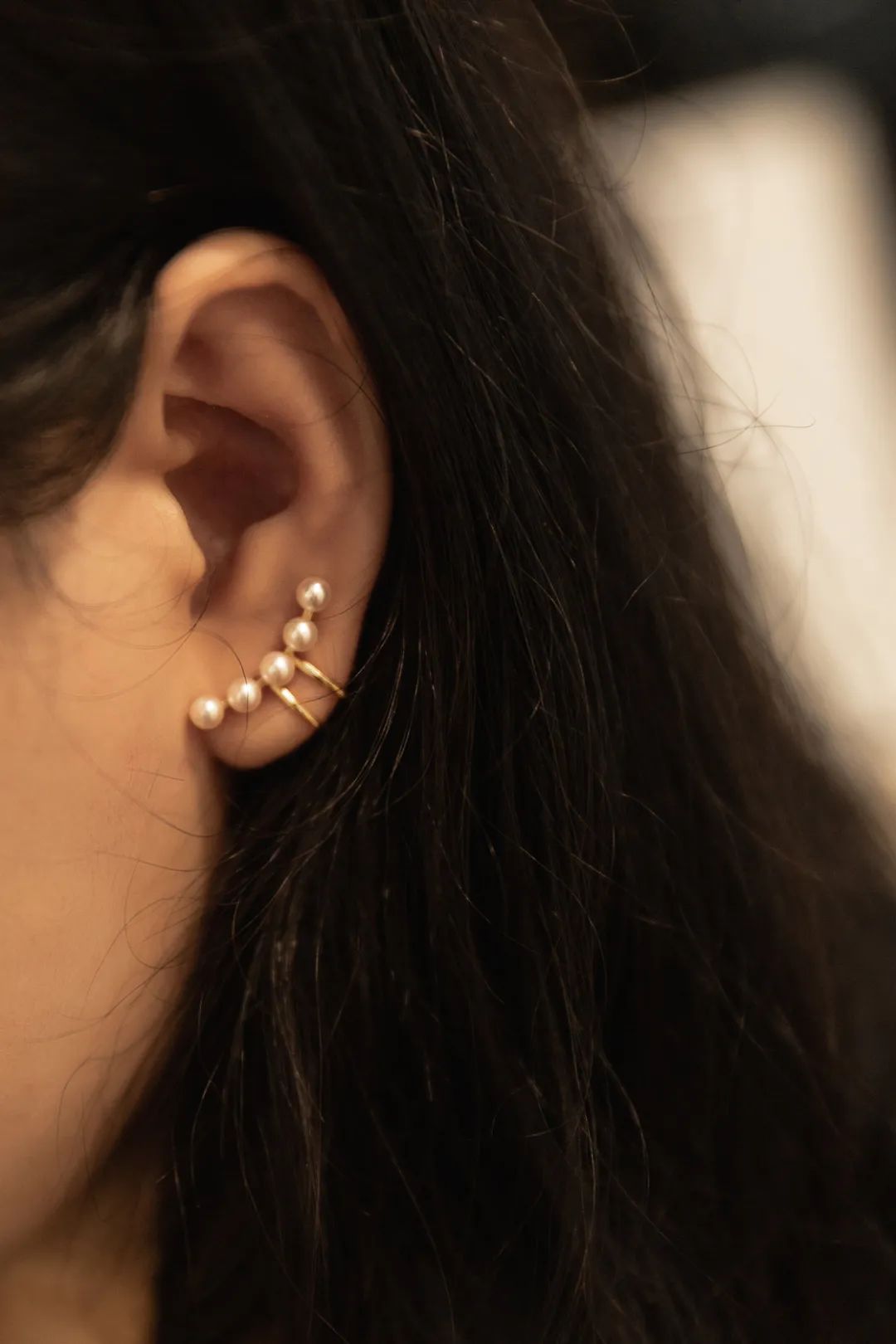 这月的5粒珍珠耳骨夹,绝对也是甄珠贝的一次新的尝试。变化位置,一只或两只,都可以应着自己的想法佩戴。5颗珠光,色彩一致的小珍珠,在耳朵上如此的和谐美妙。
