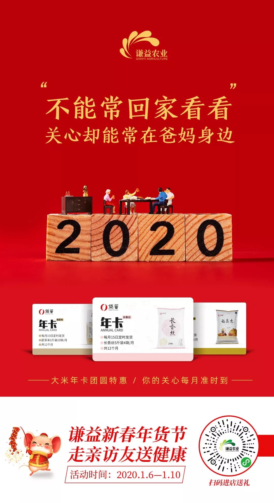 又到年末,除了给爸妈包一个大红包,更准备了一张大米年卡,不能餐餐为父母添饭,趁着年货节,一气儿把爸妈12个月的粮食都安排妥帖。孝亲,可以是一碗健康米饭,不能陪伴的日子,让爸妈感觉你并没有走远。