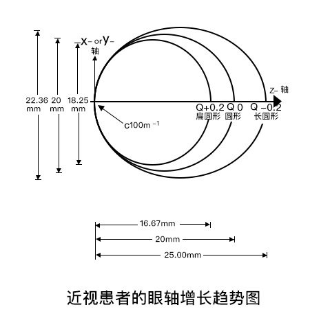 眼球各个方向的生长是不一致的,前后径增速是上下径及左右径的2~3倍,晶状体提供的代偿不足以抵消前后径增长带来的进视,所以近视会得以加速发展。