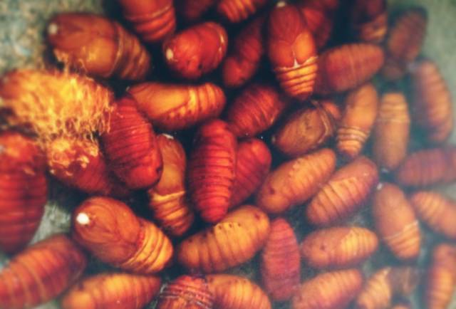 吃茧蛹的时候,不要吃茧蛹肚子中的黑芯,最好是把他们搜集起来,晾干后用锅焙干储存或磨成粉储存,这是一味非常实用的中药,叫“晚蚕沙”。