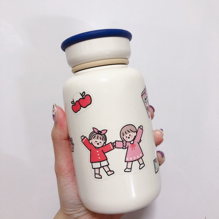 好可爱的牛奶瓶,还送了贴纸和杯刷,可以diy属于自己的牛奶瓶,容量是350ml,看上去小,但是实际上挺能装的,保温效果很赞,过了一晚水还是烫的!