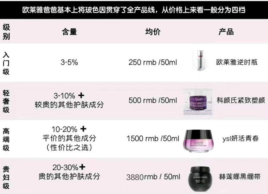 正因为玻色因有如此强大的功效,它才成为了高端护肤品的代名词,欧*雅全产品线的必备成分。