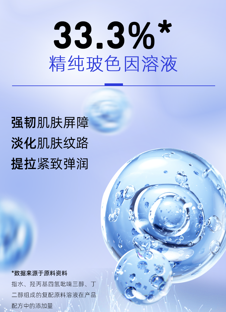如此强大的抗皱紧致效果,主要都归功于它的核心灵魂成分——33.3%浓度的精纯玻色因