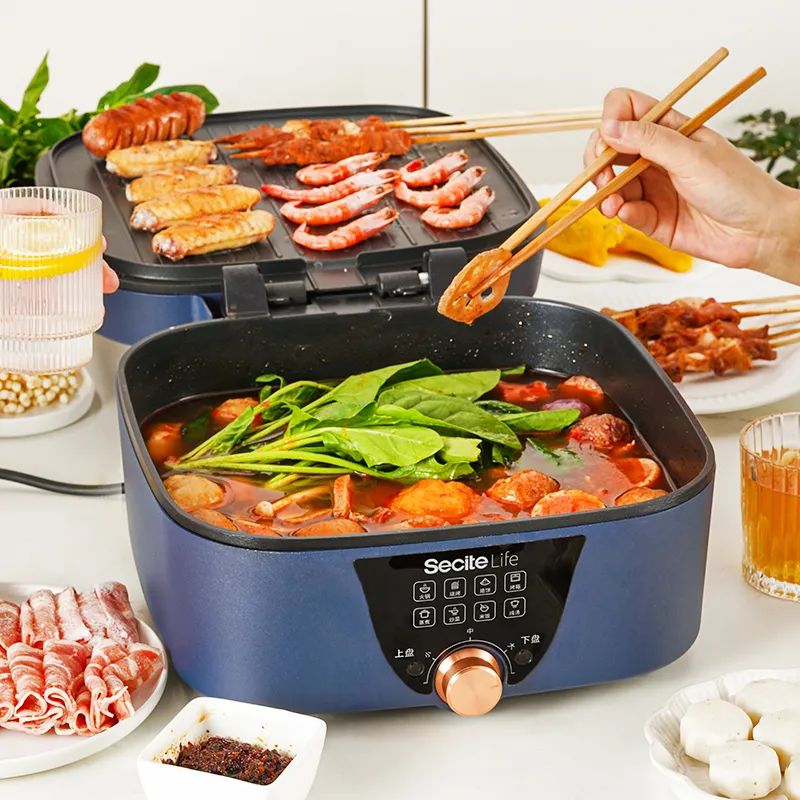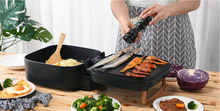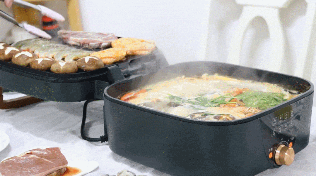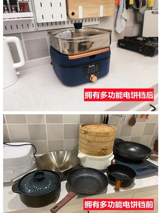 买1台等于入了平底锅、烙饼机、烧烤机、火锅、不粘锅、电饭煲!集十八般武艺于一身,省下很多空间。