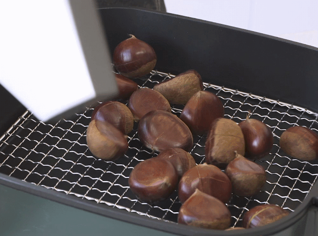 到冬天,家里人可太爱吃板栗了,电饼铛加个铁丝网(配套赠送),在家就能烘烤。