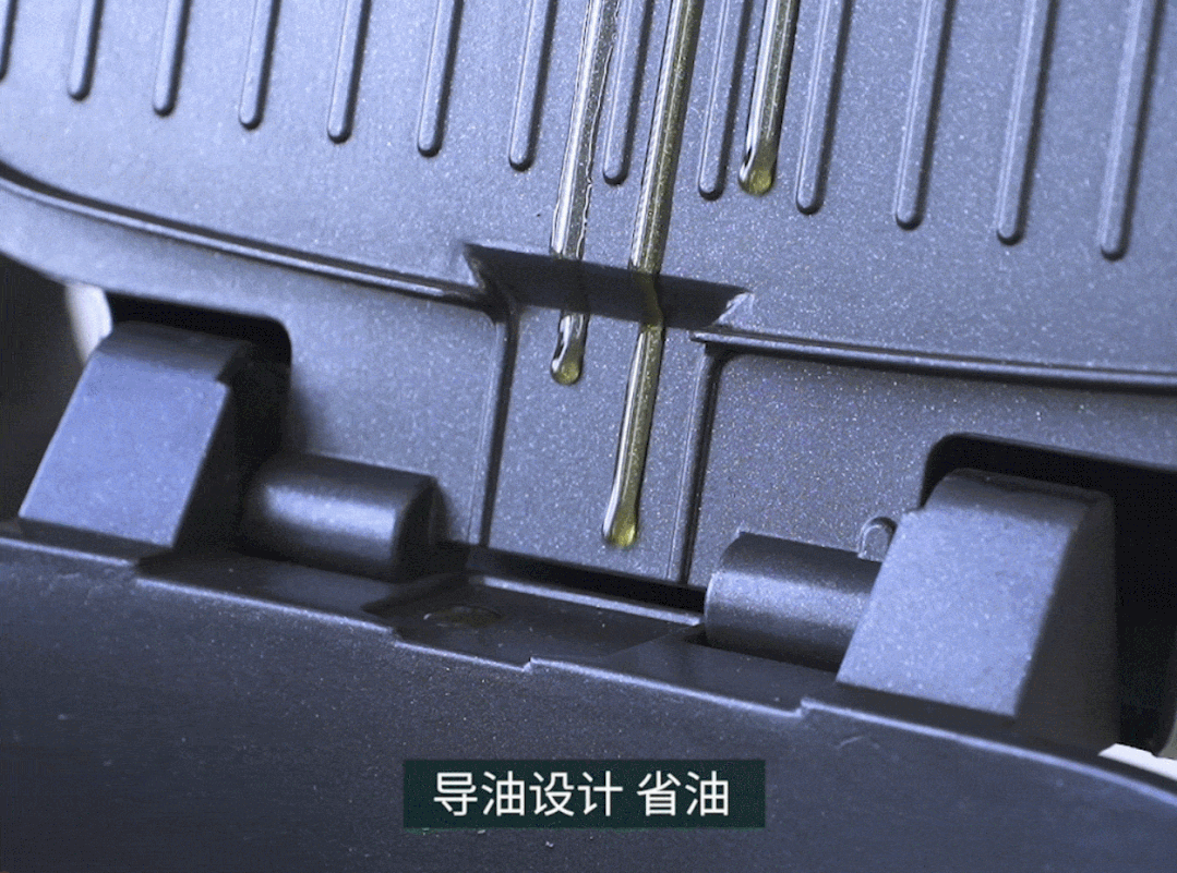 上层加热盘有导油槽设计,每次使用完,剩余油脂导流到水槽即可。