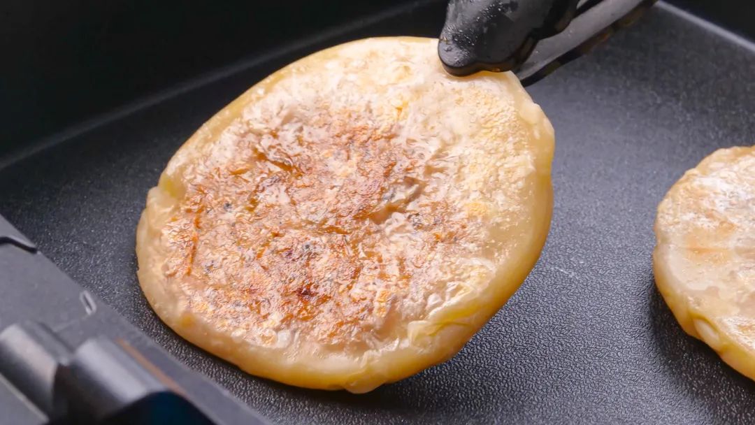 烙饼很顺滑,一滴油都没放,也不会粘得到处都是。