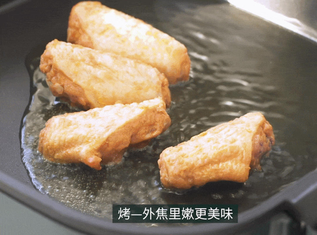 腌制好的鸡翅,在烤盘上滋滋作响,烤出金黄微焦的表皮。